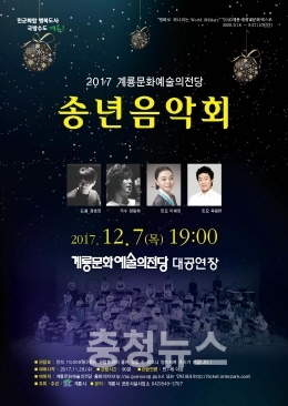 충남 계룡시(시장 최홍묵)가 함께 해요! 아름다운 마무리 2017년 송년음악회를 오는 7일 오후 7시 계룡문화예술의전당 대공연장에서 선보인다.