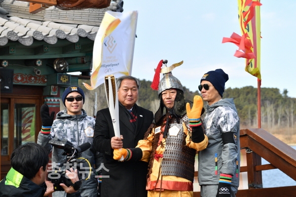 한편 오후 6시부터 정림사지 박물관에서는 동계올림픽의 열기를 고조시키기 위해 성화봉송 테마영상 상영, ‘서동선화 판타지 LOVE’, ‘백제인의 멋과 흥’ 축하공연, 환영사 및 축사 등 축하행사를 진행했다.