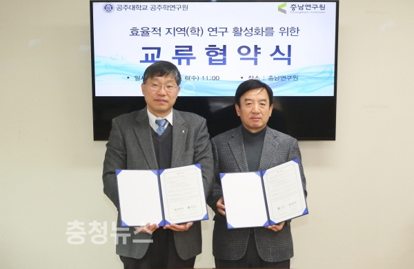 강현수 충남연구원장(왼쪽)과 유기준 공주대학교 공주학연구원장