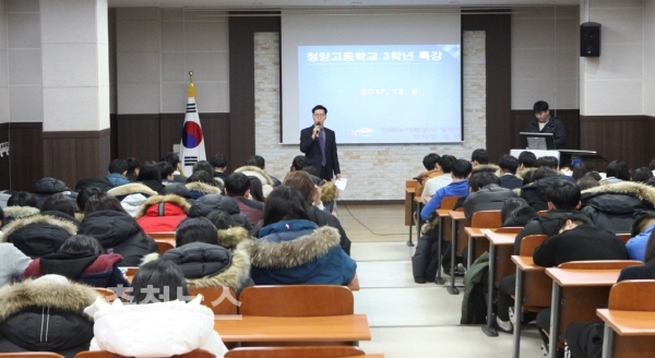 특히 12월6일 청양고등학교에서의 특강은 물 해설과 아울러 청양지사장의 공사 소개와 취업, 사회에서의 생활에 대한 강의가 함께 실시하여 졸업을 앞둔 고등학교 3학년 학생들에게 유익한 시간이 되었다.