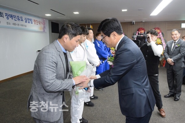 창단식에는 이춘희 시장(세종시장애인체육회 회장), 고준일 시의회의장, 체육관련 인사, 장애인체육회 임원, 경기단체 회장 등이 참석해 장애인체육회 유도 실업팀의 새로운 도약을 축하했다.