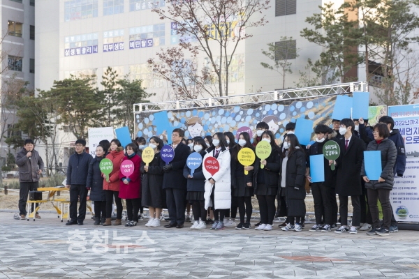 소담고등학교(교장 백승환, 이하 소담고)는 8일 종촌동 제천뜰근린공원 분수대 앞에서 세종환경운동연합과 ‘미세먼지 없는 맑은 세종’ 캠페인을 진행했다.