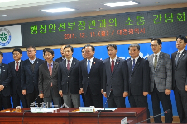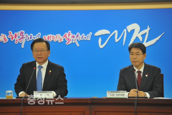 옛 충남도청사에 중앙행정기관이 입주할 수 있도록 하자는 건의에는 "청사 재배치는 다양한 부처가 맞물려 있는 만큼 해당 부처와 상의하겠다"고 답변했고, 재난안전특별교부세 지원 등에 대해서는 "올해는 포항 지진 때문에 제대로 배정하지 못했지만 내년에는 대전시에 먼저 반영하겠다"고 약속했다.