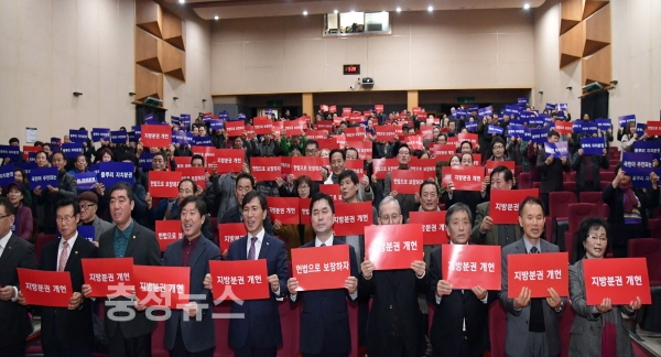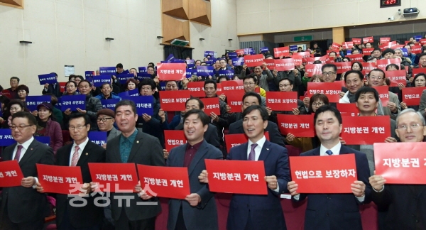 시는 지난 11일 문화예술회관에서 중앙정부가 추진하는 지방분권 개헌에 맞춰 지방분권개헌 시민대표단, 사회단체, 시민 600여명이 참석한 가운데 ‘지방분권 개헌 천만인 서명 논산시민 결의대회’를 개최했다.