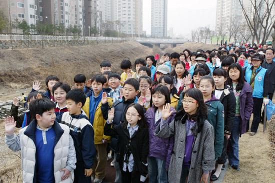반석천을 생태하천으로 가꾸고 지키기 위한 반석천지킴이 발대식이 12일 오후 2시반석초등학교 학생과 반석마을 및 송림마을 아파트단지 입주민을 비롯한 노인회원 등 100여명이 참여한 가운데 반석천변에서 열렸다. 이들은 앞으로 주민봉사팀, 학생봉사팀 등 팀별로 나눠 정기적으로 자율적인 하천 정화활동을 전개할 계획이다. ▲ 노은2동환경발대식 저작권자 © 충청뉴스 무단전재 및 재배포 금지 송영혜 기자 다른기사 보기 기사가 마음에 드셨나요? 충청뉴스 좋은 기사 후원하기 1,000원 3,000원 5,000원 10,000원 30,000원 50,000원 직접입력 비회원 약관동의하기 ※ 소중한 후원금은 더 좋은 기사를 만드는데 쓰겠습니다.