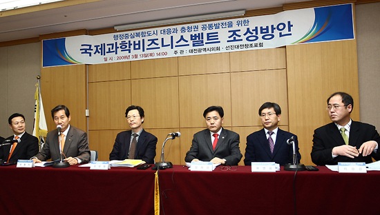 또 “충청권이 합심해 국제과학비즈니스벨트를 유치한 후 상호 역할과 기능을 분담해 상생효과를 거둘 수 있도록 정책을 펴 나가야 한다”고 발표했다.
