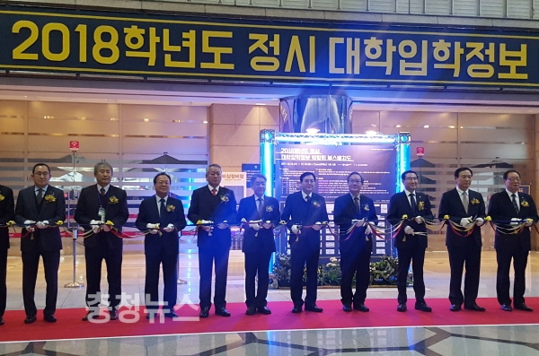 상명대 백웅기 총장은 첫날 10시에 개최된 2018학년도 정시 대학입학박람회 개막식 테이프 커팅식에 참석하고 참가 대학 내·외빈들과 함께 박람회장을 둘러보는 시간을 가졌다.