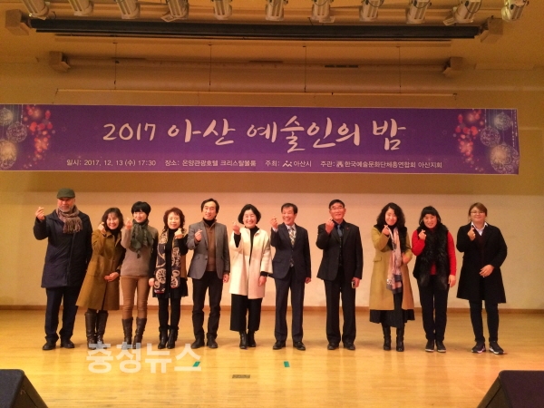 (사) 한국예총 아산지회(지회장 이기은)가 지난 13일 아산시 온양관광호텔 크리스탈 볼룸에서‘2017 아산 예술인의 밤’행사를 개최했다.