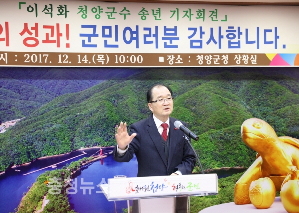 이석화 청양군수가 2017년을 마무리하면서 주요 성과를 발표하고 내년도 군정 운영 방향을 제시하는 자리를 가졌다.