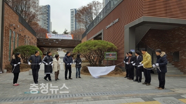 충남 천안시 서북구보건소는 15일 쌍용동 현대1차아파트에 이어 불당동 지웰더샵아파트를 공동주택 금연아파트 2호로 지정하고 현판식을 진행했다.