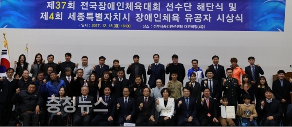 세종특별자치시장애인체육회는 15일 정부세종컨벤션센터에서 ‘제37회 전국장애인체육대회 세종특별자치시 선수단 해단식 및 제4회 장애인체육 유공자 시상식’을 개최했다.