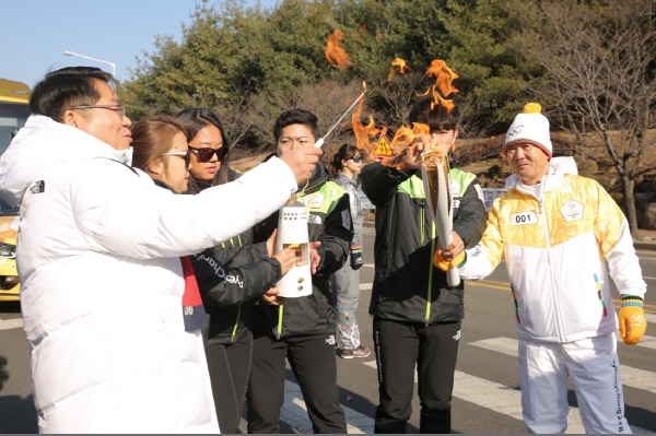 2018 평창동계올림픽대회’ 성공 개최의 염원을 담은 ‘평창의 불꽃’ 성화가 16일 충남 아산시 일원에서 많은 시민과 관광객이 모인 가운데 힘차게 달렸다.