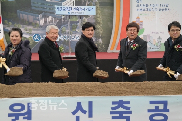 세종시교육청(교육감 최교진)은 지난 15일 조치원 서북부 개발지구 공공청사 부지에서 세종교육원' 신축공사 기공식을 가졌다.