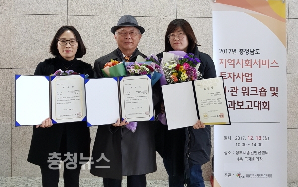 이날 행사에서는 ‘2017년 충청남도 지역자율형사회서비스 투자사업’ 관련 공모전 시상식도 진행됐는데, 백석실버센터 이용객 송청광 씨(남ㆍ76)가 이용자 수기 부문, 백석실버센터 손정민 팀장(여ㆍ52)은 사진공모 부문에서 각각 장려상을 수상하기도 했다.