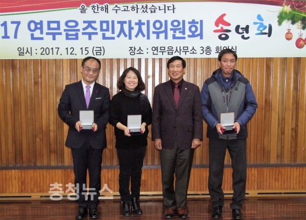 이밖에도 투철한 사명감과 봉사정신으로 연무읍 행정발전에 기여한 연무읍사무소 이성란, 김현우, 이한수 직원에게 고마운 마음을 담아 감사패를 전달했다.