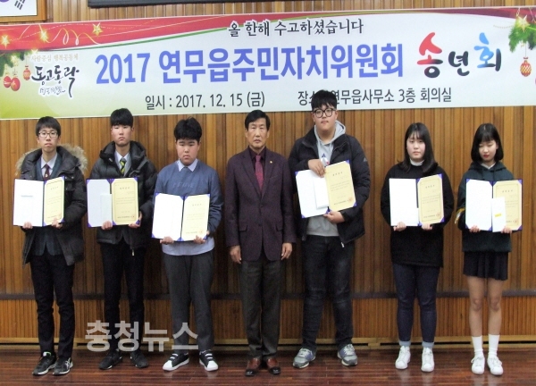 신철 위원장은 “한해를 마감하면서 장학금과 함께 성금을 전달해 매우 기쁘게 생각한다”며 “항상 연무읍 발전에 힘써줘 감사패를 받은 세분의 직원 분들게 축하를 드린다”고 말했다.