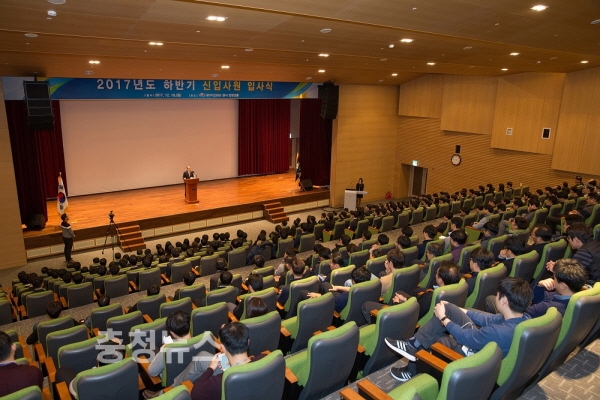 정부의 좋은 일자리 창출을 선도하고 있는 한국서부발전(사장직무대행 정영철)이 2017년도 하반기 신입사원 125명의 입사식을 지난 18일 충남 태안 본사에서 개최했다고 밝혔다.