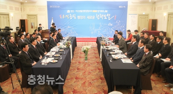 충남 천안시(시장 구본영)와 아산시(시장 복기왕)는 19일 온양관광호텔에서 양 시장과 실·국장급 행정협의회 위원, 민간자문위원이 참석한 가운데 ‘천안아산생활권 행정협의회 제7회 정기회의’를 개최했다.