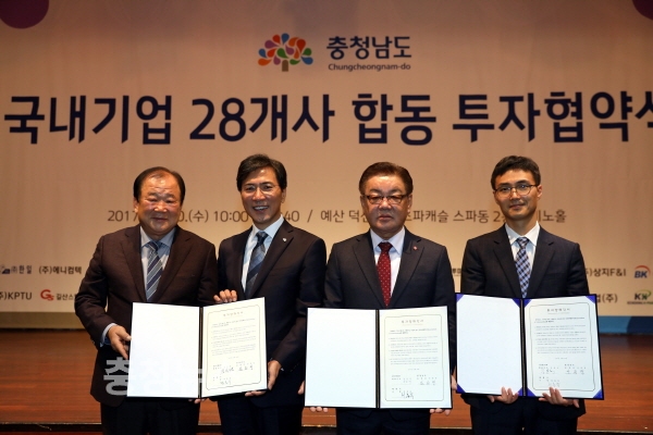 충남 계룡시(시장 최홍묵)는 지난 20일 예산덕산 스파캐슬에서 충청남도, 도내 시‧군과 함께 합동투자 협약식(MOU)을 가졌다.