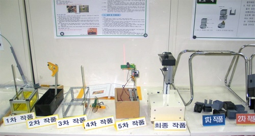 | ▲ 손가락이 바닥에 닿지 않는 컴퓨터용 마우스, 깔끔하고 편리한 케이블 팬션, 편리한 커피믹서 보관함 및 커터기, 중력가속도 측정정치, 휴대용 독서등, 시각 장애우를 위한 장기판 등 우수작품 | ||