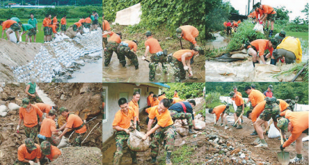 악천후에도 아랑곳 하지 않고, 붕괴된 하천제방 복구를 위해 장병들이 긴급 투입되어 농민들의 걱정을 덜어주고 있다. 62사단은 지난해 9월 전군