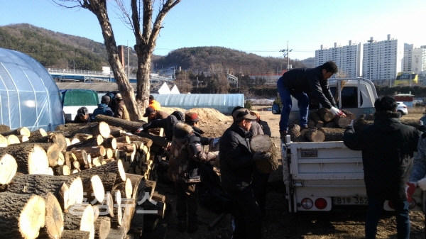 관내 홀몸 노인 등 취약계층 13가구에 1톤 트럭 13대분 땔감 지원
