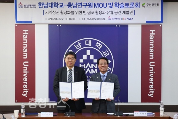 한남대(총장 이덕훈)는 지난 21일 본관 대회의실에서 충남연구원(원장 강현수)과 교류협약을 체결했다.