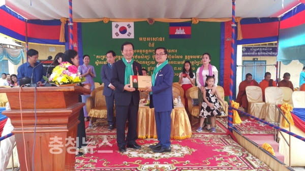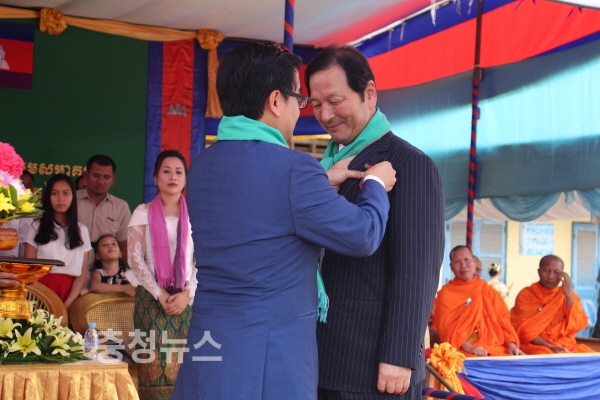 수여식은 캄보디아 프레이벵주((Prey Veng Province)에 있는 니크로엉 초등학교에 마련된 행사장에서 캄보디아 정부를 대표해 유크 버나(H.E. Youk Bunna) 행정부 차관 겸 왕립행정학교 총장이 국왕 명의의 훈장을 수여했다.