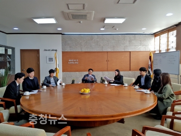 한남대 이덕훈 총장은 제2기 해외인턴으로 선발된 학생 6명으로 총장실로 초대해 격려하고 “해외 인턴십을 통해 우리 학생들의 경쟁력을 높여 해외취업 및 창업이 더욱 활성활 될 것으로 기대하며, 학교 차원에서 적극 지원하겠다”고 밝혔다.