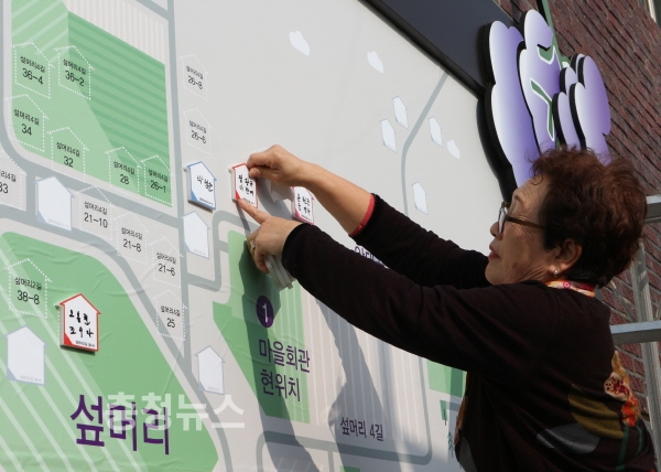 사업단 학생들은 주민의 의견을 수렴하여 마을의 지도를 디자인했고, 주민들이 자신들의 이름과 주소를 적은 집모양을 제작된 지도위에 붙이는 작업을 하며 주민의 참여와 학생들의 도움으로 지도를 완성했다.