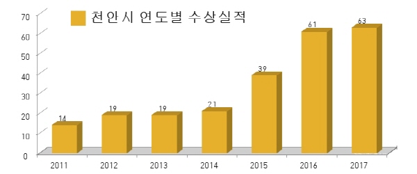 충남 천안시가 63개 부문 역대 최다 수상 실적을 달성했다.
