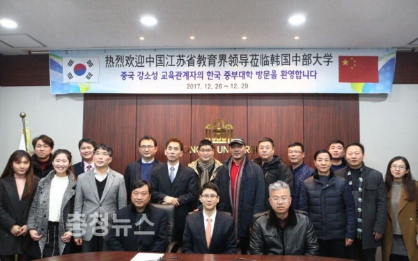 중부대학교(총장 홍승용)는 지난 26일부터 4일간 중국 강소성 소재 고등학교 및 남경시각예술대학 등 총 10개 교육기관 관계자를 초청하여 <대학탐방 및 한국문화체험> 프로그램을 진행한다고 밝혔다.
