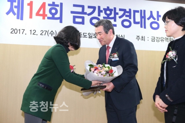 금강 환경대상을 수상하고 있는 김동일 보령시장