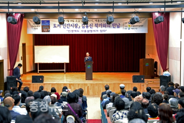 지난 11월 계룡도서관에서 진행한 김홍신 작가 초청 인문독서 아카데미 특강.모습