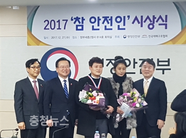 행정안전부, 전국재해구호협회와 함께 정부세종청사에서 개최된 참 안전인 시상식에는 전국에서 총 12명이 수상했다. 이날 시상식에서 김부겸 행정안전부 장관이 수상자와 가족에게 직접 시상하면서 격려했다.