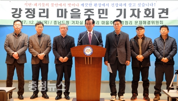 도는 강정리 주민을 중심으로 구성된 ‘강정리 문제해결위원회’가 28일 도청 브리핑룸에서 기자회견을 열고 문제 해결을 위한 주민 측 요구사항을 도와 청양군에 정책권고 했다.