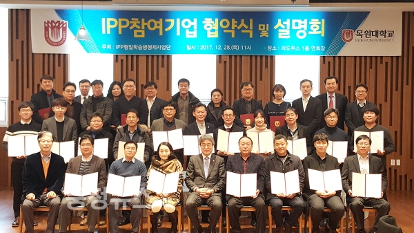 목원대학교(총장 박노권) IPP형 일학습병행제사업단은 지난 28일 도안동 라도무스컨벤션에서 34개 현장실습 참여기업 대표와 임원, 학과별 담당교수 등 70여 명이 참석한 가운데 협약식과 설명회를 가졌다고 밝혔다.
