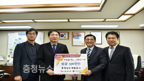 지난 19일 천안논산고속도로(주)(대표이사 이선관)는 관내 모범 청소년과 어려운 이웃을 위한 장학금 5백만원과 3백만원 상당의 연탄을 기탁했으며, 논산중앙장로교회(담임목사 전종혁)는 올해도 어김없이 3천만원을 어려운 이웃들에게 전달했다.