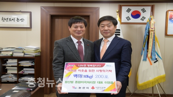△한국농업경영인 논산시연합회(회장 이희영) 3백만원 △황산벌기독교연합회(회장 장성기목사·노성시내산교회) 성금 1백50만원 △오비맥주(주) 충남남부지점(지점장 이경화) 연탄 2백만원 상당 △한희민감독 논산시리틀야구단(회장 이상길) 백미(10kg) 50포 △황산벌종합미곡처리장(대표 이영흠) 백미(10kg) 200포 △한국양곡가공협회(지부장 김주승) 백미(10kg) 200포 △논산시 안전관리자문단(단장 윤석권) 백미(10kg) 100포 등을 기탁해 나눔 분위기 조성에 동참했다.
