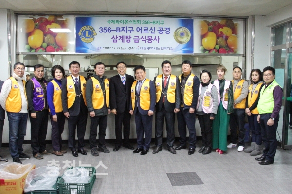 국제라이온스협회 356-B지구 김동원 총재를 비롯해 지구1.2부총재 및 지구집행부 일동은 한 해가 저물어가는 송년의 기간인 29일 대전광역시 노인종합복지관을 방문해, 지역 어르신 500여명을 초청한 가운데 삼계탕 급식봉사를 펼치고, 지역 어르신들게 건강을 기원하는 인사를 전하는 뜻깊은 시간을 가졌다.
