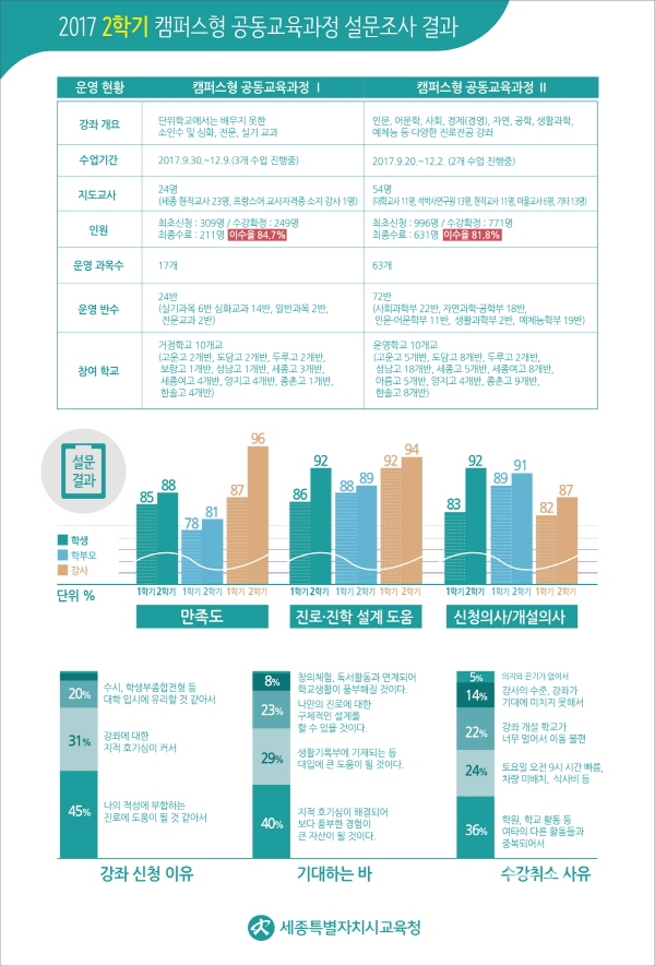 세종시교육청(교육감 최교진)은 고등학생을 대상으로 한 ‘2017 2학기 캠퍼스형 공동교육과정’을 성공적으로 마무리했다고 2일 밝혔다.
