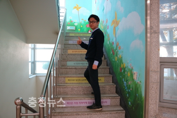 충남 홍성우체국(국장 이계연)은 직원 및 우체국을 방문하는 고객들을 위해 건강계단을 조성했다.