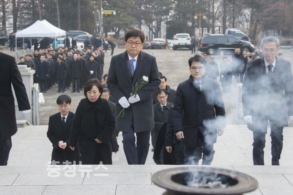 최교진 세종특별자치시교육감이 2일 7시 50분, 조치원읍 침산리에 위치한 충령탑을 방문하여 순국선열과 호국영령의 숭고한 뜻을 기리며 새해 일정을 시작했다.