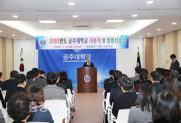 아울러 이날 공주대는 2018년도 시무식과 함께 청렴문화 확산을 위한 청렴선포식 행사를 가졌다.