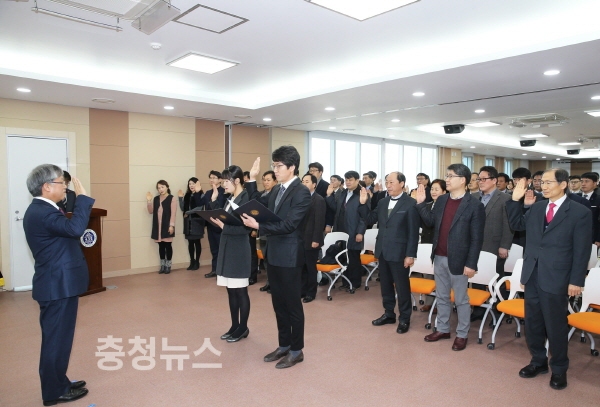 공주대학교(총장직무대리 김희수)는 2일 대학본부 대회의실에서 김희수 총장직무대리를 비롯한 교직원, 학생 등이 참석한 가운데 2018년도 시무식 및 청렴선포식 행사를 가졌다.