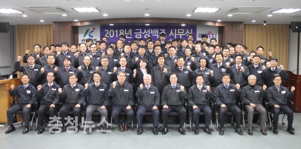 금성백조주택(회장 정성욱)이 2일 대전 본사에서 임직원 약 200여명이 모인가운데 2018 무술년을 힘차게 알리는 시무식을 진행했다.