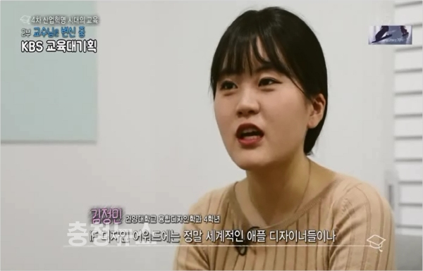 매 학기 강의계획서를 공개해 교수들끼리 상호 점검하고 교수가 지식 전달자가 아닌 수업의 코디네이터 역할을 하며 학생들이 스스로 역량을 키움으로써 국내 대학 최초로 세계 3대 디자인 어워드인 IF디자인어워드에서 삼성, 애플 등 글로벌기업들과 함께 당당히 골드상을 받았다는 내용이 방송을 통해 잘 나타났다.