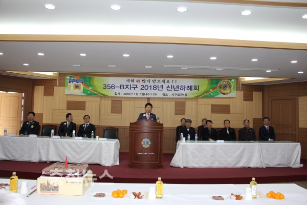 국제라이온스협회 356-B지구는 3일 지구회관 4층에서 김동원 총재를 비롯한 지구임원 및 회장단 등 100여명이 참석한 가운데 2018년 신년하례회를 개최하고, 회원분들의 건강과 행운을 기원하는 따뜻한 시간을 가졌다.