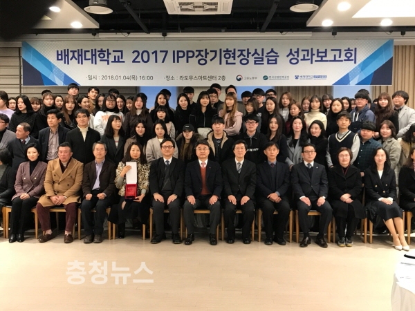 배재대는 4일 대전 라도무스아트센터에서 ‘2017 IPP장기현장실습 성과보고회’를 열었다. 김영호 배재대 총장, 채순기 IPP사업단장, 참여 학과 교수 및 학생, 기업 관계자 등 200여명이 참석해 지난해 우수사례 성과 공유와 활용방안을 모색했다. 장기현장실습은 재학 중 일정 수준 이상 급여와 학점을 받을 수 있어 입직 기간과 일자리 미스매치를 확연히 줄일 수 있다.