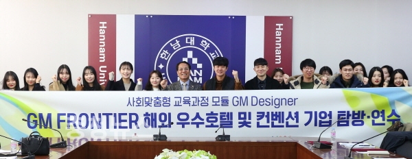 GM(Glocal MICE : Meeting, Incentive trip, Convention, Exhibition&Event) Frontier 프로그램은 한남대 컨벤션호텔경영학과가 추진하는 ‘GMDesigner’ 과정의 일환으로, 대학과 산업체가 협력해 호텔과 컨벤션 등 MICE분야의 인재를 양성하는 사회맞춤형 교육이다.